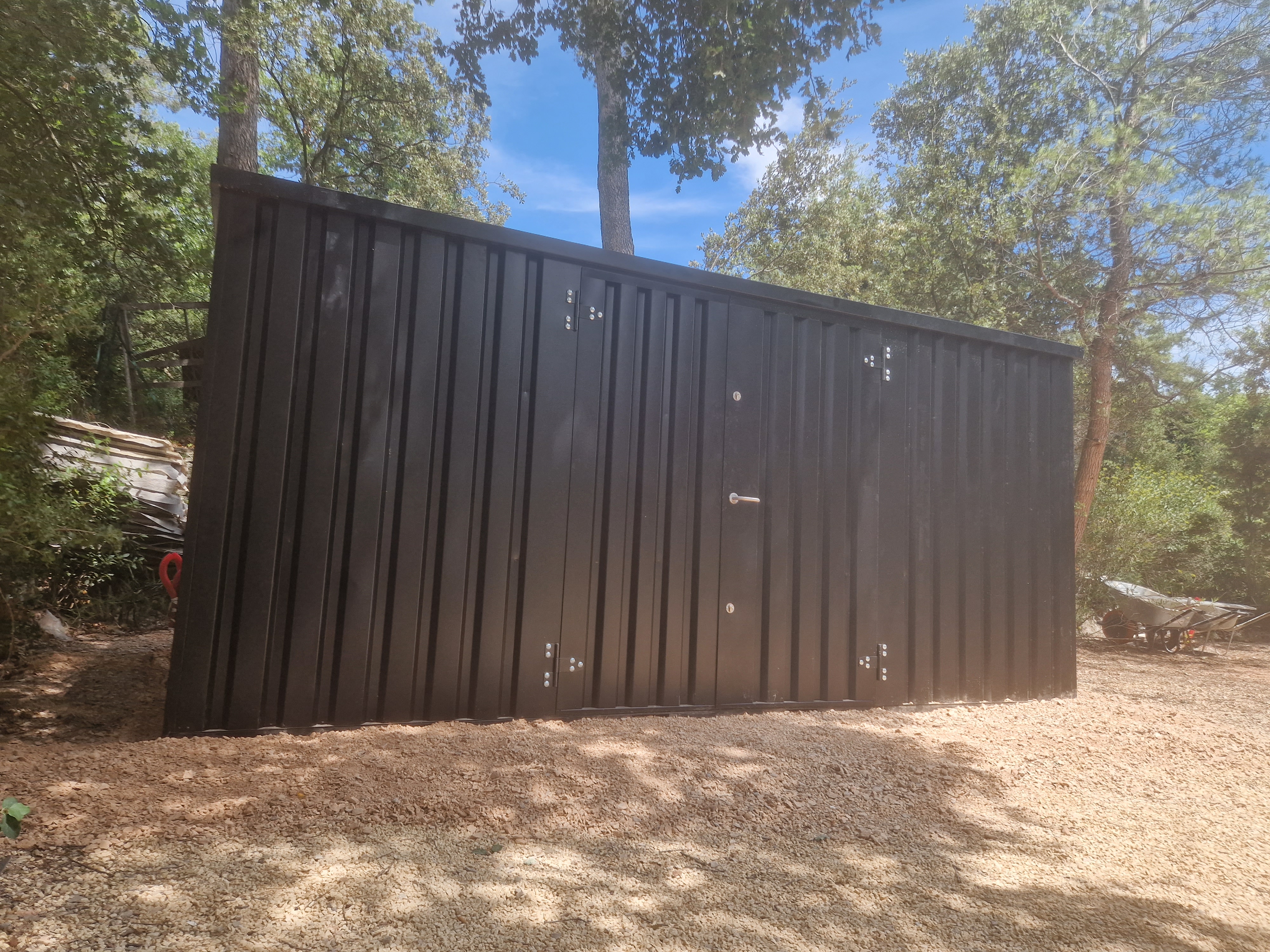 Très bonne idée ce conteneur livré démonté. J'ai commandé un 4mx3m couleur gris galva porte bleu. Au niveau de la commande c'est parfais, une question un appel et on nous répond rapidement et parfaitement. Livraison au top malgré les difficultés du lieu de livraison. Merci au chauffeur très agréable et au top pour la livraison et les conseils de montage. Petit bémol sur les qualité de finition quelle que rayure sur les peintures, un panneau voilé et une des serrure complètement bloqué. Bonne entreprise mais la qualité de finition pourrais être amélioré.